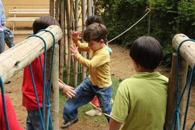 Maternal (2 a 3 anos): Com passos bem pequenos e vagarosos ou no colo, as crianças chegam cedinho à creche. As professoras as esperam para, juntos, passarem o dia. Movem-se com alegria, correndo, pulando, realizando atividades artísticas, montando e desmontando suas brincadeiras no pátio e outras na sala, num ritmo leve e fluido. Os cuidados humanos básicos são realizados com calma, envolvendo os pequeninos com amor e atenção: troca de fraldas, de roupas, pôr tirar sapatos, hábitos de higiene, refeições. Assim, as crianças aprendem, a partir do exemplo do educador, adquirindo independência, formando valores, hábitos e habilidades, importantes para toda a vida. Após o almoço, uma música suave os embala, levando-os a um tranqüilo sono revitalizador. Ao despertar, a tarde segue com mais brincadeiras e músicas até a hora de voltar para casa.